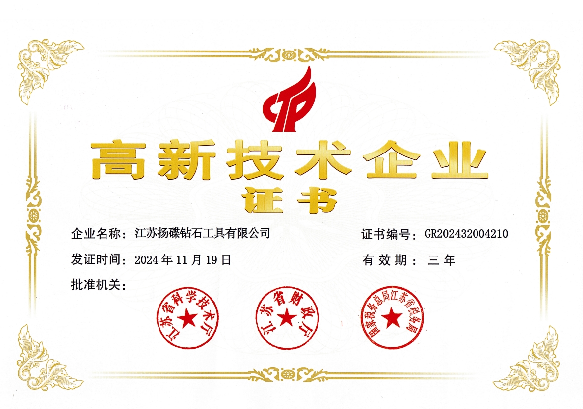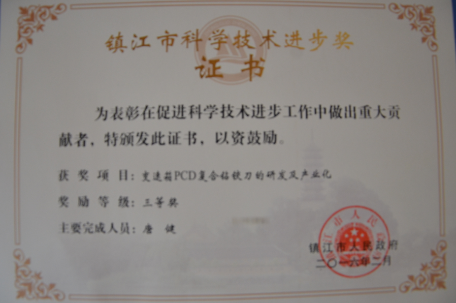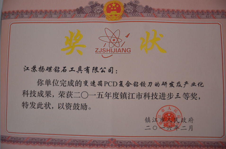 多年來,企業(yè)通過ISO9001國際質量體系認證,被中國中輕產品質保中心授予“全國金剛石制造行業(yè)質量放心滿意單位”,獲得江蘇省高新技術企業(yè)稱號,榮獲江蘇省小巨人稱號,變速箱PCD復合鉆鉸刀獲省高新技術產品等等。